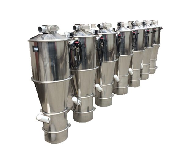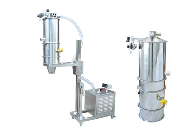 真空加料機由真空泵(無油、無水)、真空料斗、過濾器(有聚酯覆膜過濾器、PE過濾器、316L不銹鋼過濾器或鈦金屬過濾器多種選擇)、壓縮空氣反吹裝置、氣動放料門裝置、料位自動控制裝置、不銹鋼吸料咀、輸送軟管等組成,整套系統設計合理、制造精美。